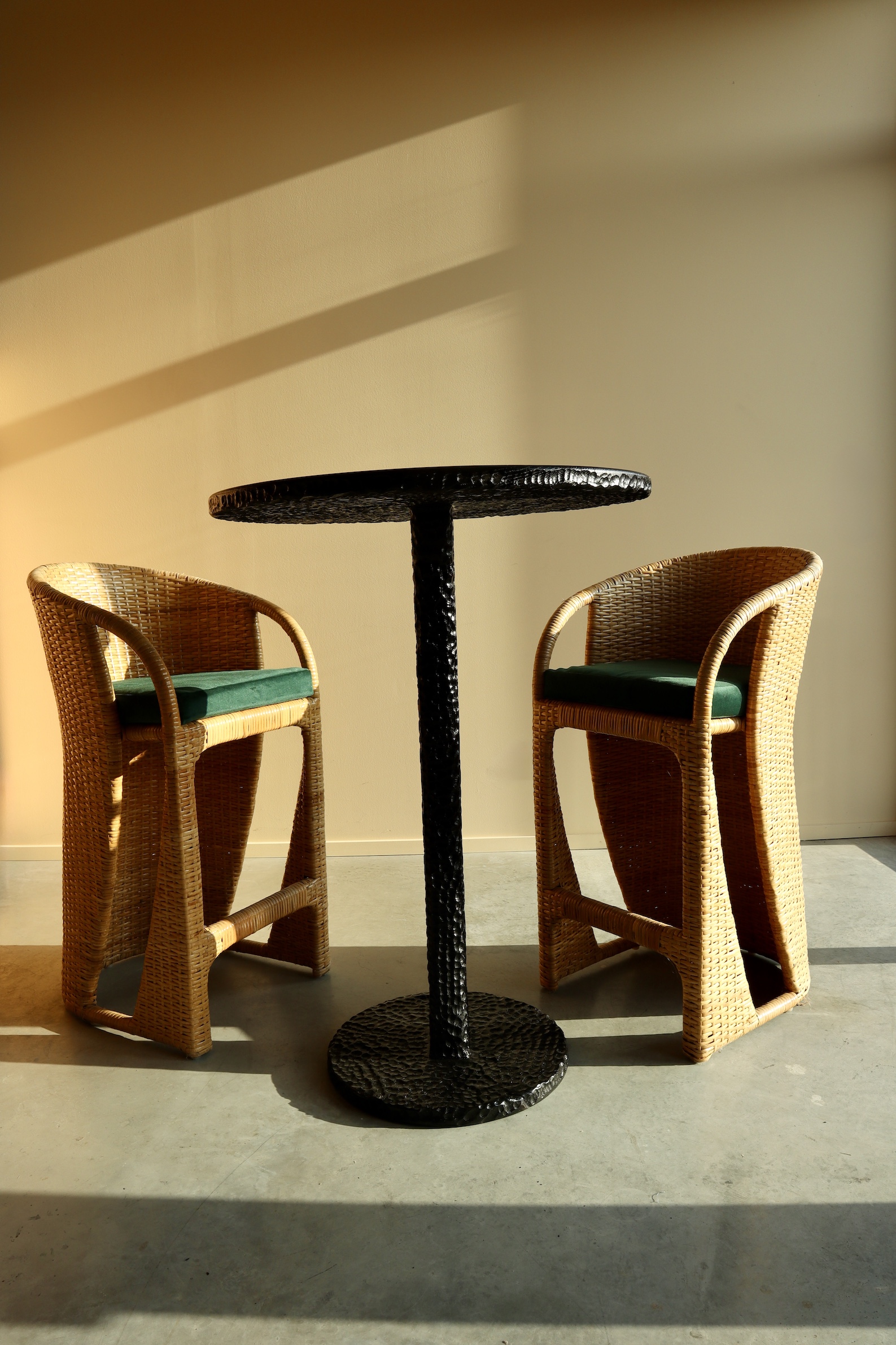 Dit elegante zwarte eiken staantafeltje is een unieke blikvanger binnen elk interieur. Met een hoogte van 1,15 meter en een tafelblad met een diameter van 83 cm heeft dit tafeltje een ideaal formaat: compact genoeg om in kleinere ruimtes tot zijn recht te komen, maar tegelijk ruim genoeg om comfortabel te gebruiken voor een koffiemoment, een aperitief, of als stijlvolle toevoeging aan een leeshoek of ontvangstcorner.